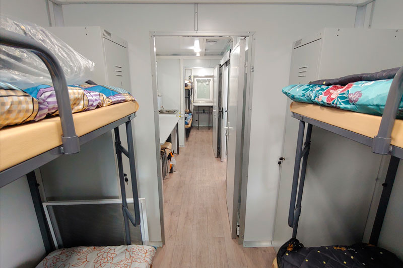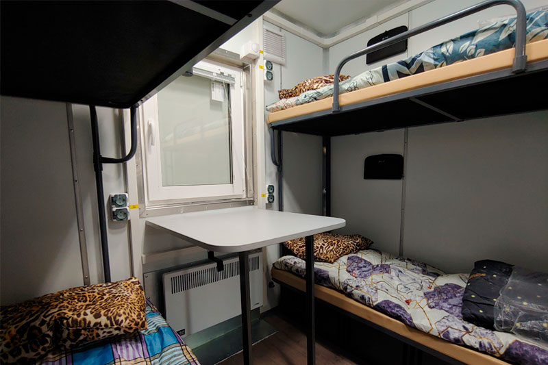 ЖИЛЫЕ ОТСЕКИ: двухъярусные кровати, шкафы для одежды, индивидуальные полки и розетки у каждого места.