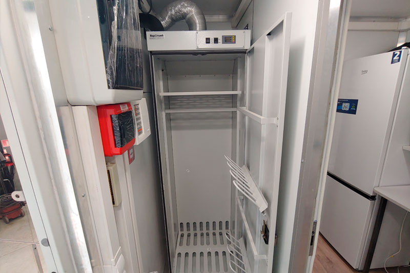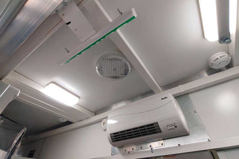 ВАЖНО ЗНАТЬ: Сэндвич-панели соответствуют классу пожарной опасности НГ/Г1 (ФЗ № 123-ФЗ), а сопротивление теплопередаче — требованиям СП 50.13330.2012. Толщина утеплителя — 100 мм в стенах и потолке и 60 мм в полу, что обеспечивает надежную теплоизоляцию в разных климатических зонах.