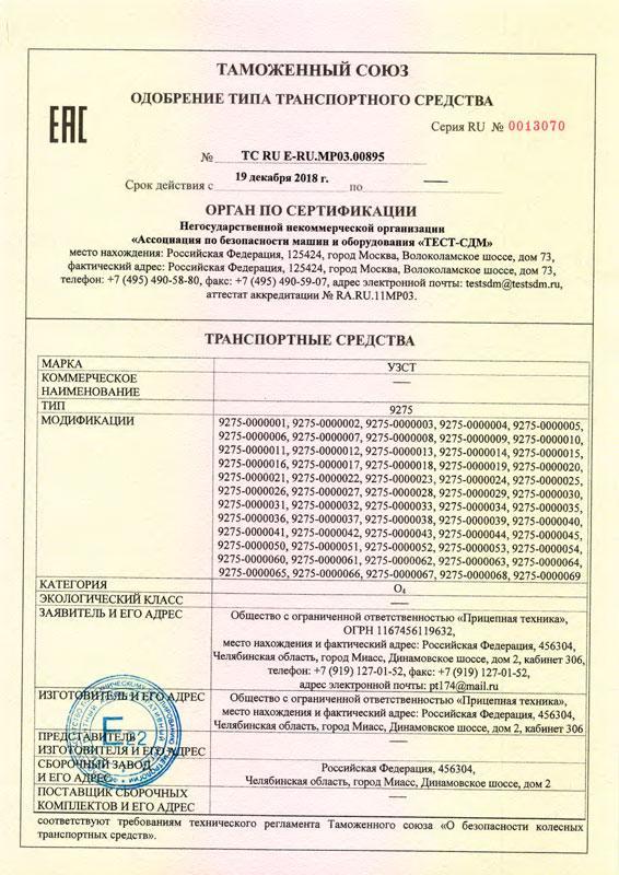 | TC RU E-RU.MР03.00895 | Прицеп бортовой |