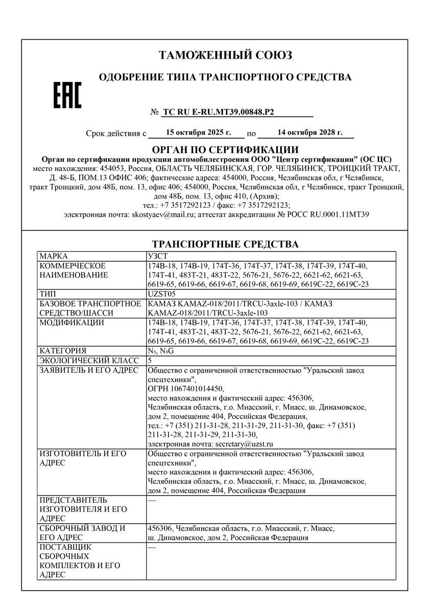 | ТС RU Е-RU.МТ39.00846.Р2 (Евро-5) |
