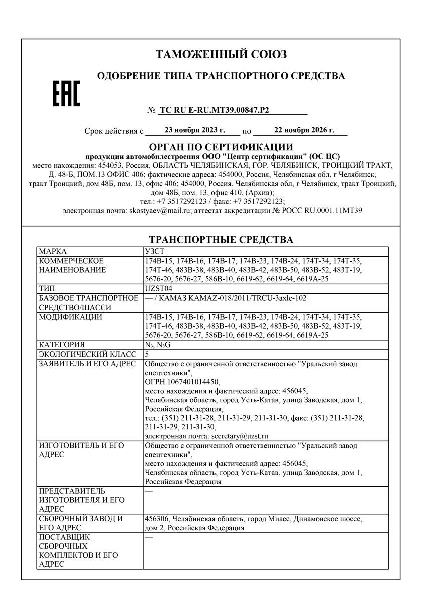 | TC RU E-RU.МТ39.00847.Р2 (Евро-5) | Автоцистерна 8...14 м3 | 6619А-25 |