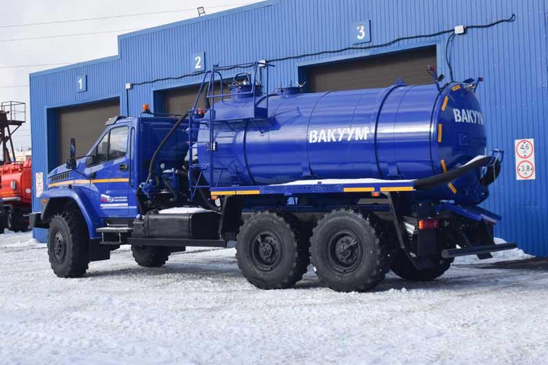 6х6, 283 л.с., коробка передач ЯМЗ-1105, спальное место, баки 300+210 л., объем цистерны 10 м³, толщина обечайки и днищ 5 мм, насос КО-505, наружные шпангоуты, механический уровнемер, люк-лаз