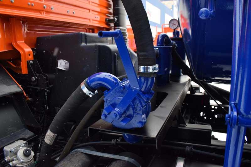 6х6, 283 л.с., коробка передач ЯМЗ-1105, спальное место, баки 300+210 л., объем цистерны 10 м³, толщина обечайки и днищ 5 мм, насос КО-505, наружные шпангоуты, механический уровнемер, люк-лаз