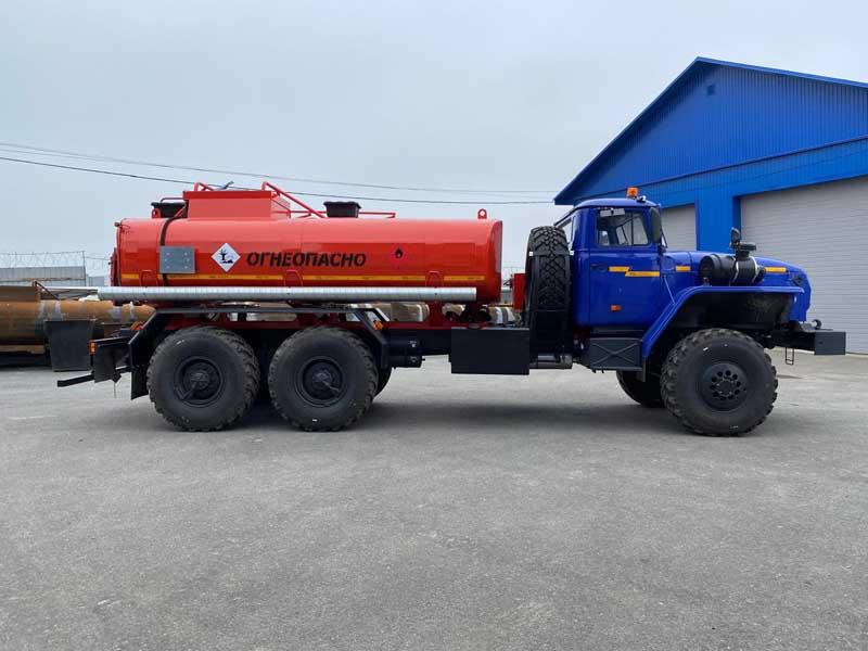 6х6, 228 л.с., коробка передач ЯМЗ-2361, без спального места, баки 300+210 л., объем цистерны 10 м³, 1 секция, насос СВН-80, чемоданное сечение, УВТ между кабиной и цистерной с левой стороны, ДОПОГ