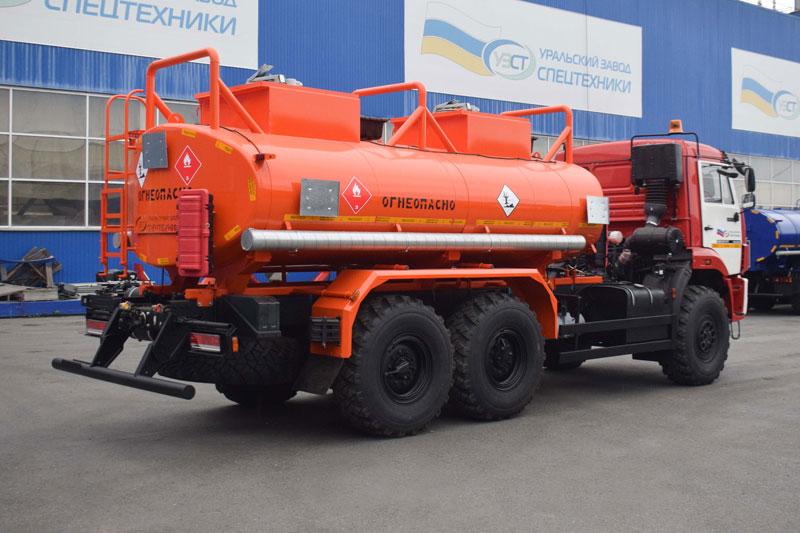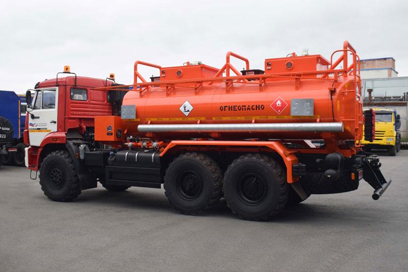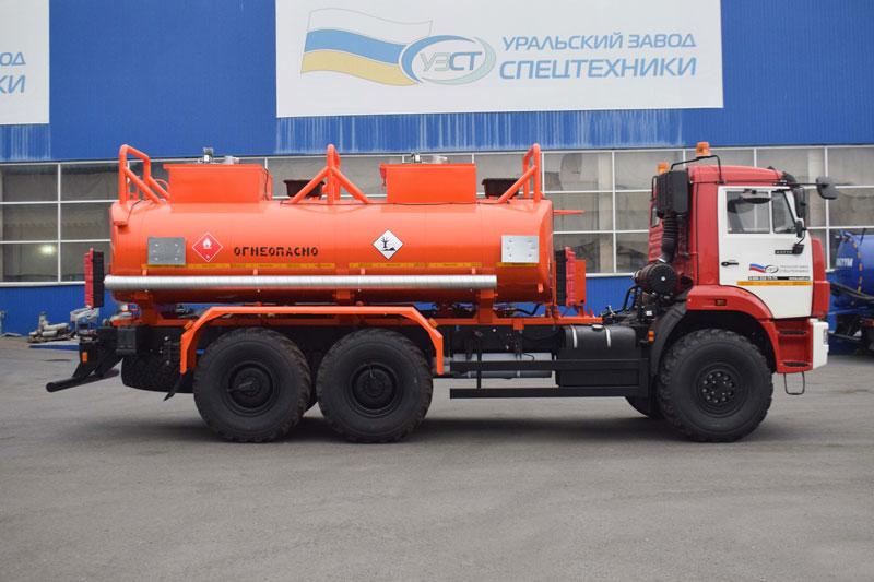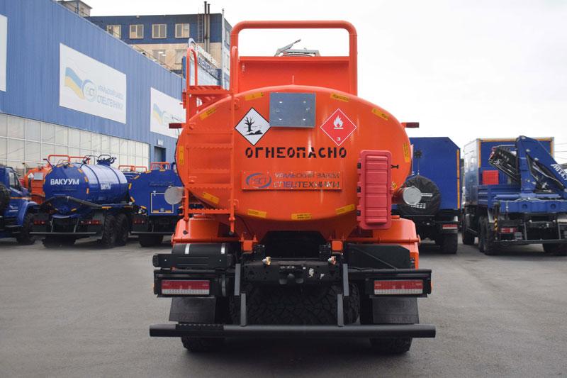 6х6, 292 л.с., коробка передач 1310ТО, без спального места, баки 210+350 л., объем цистерны 11 м³, 2 секции, насос УЗПМ СВН-80, эллиптическое сечение, УВТ между кабиной и цистерной с левой стороны, ДОПОГ
