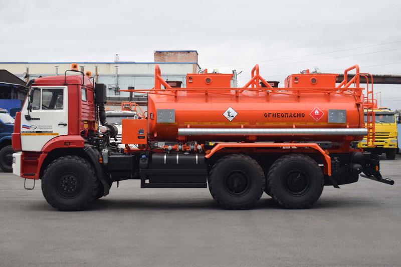6х6, 283 л.с., коробка передач ЯМЗ-1105, без спального места, бак 300 л., объем цистерны 11 м³, 1 секция, насос УЗПМ СВН-80, эллиптическое сечение, УВТ между кабиной и цистерной с левой стороны, ДОПОГ