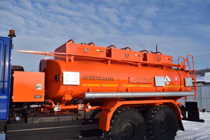 6х6, 283 л.с., коробка передач ЯМЗ-1105, спальное место, баки 300+210 л., объем цистерны 11 м³, 1 секция, насос УЗПМ СВН-80, эллиптическое сечение, УВТ между кабиной и цистерной с левой стороны, укомплектован ДОПОГ
