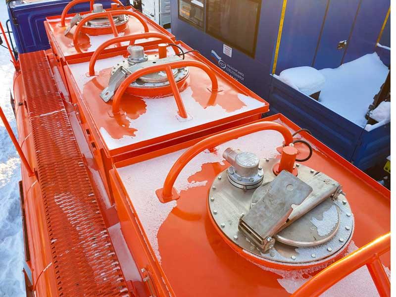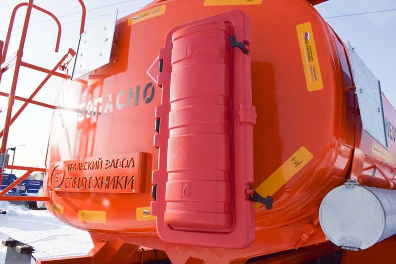 Переднее размещение, оборудована лестницей и площадкой для осблуживания с перилами. Алюминиевая крышка горловины. |