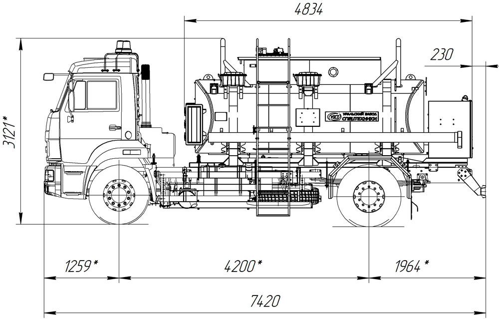 | Горловина цистерны | Оборудована лестницей и площадкой для обслуживания, с перилами |