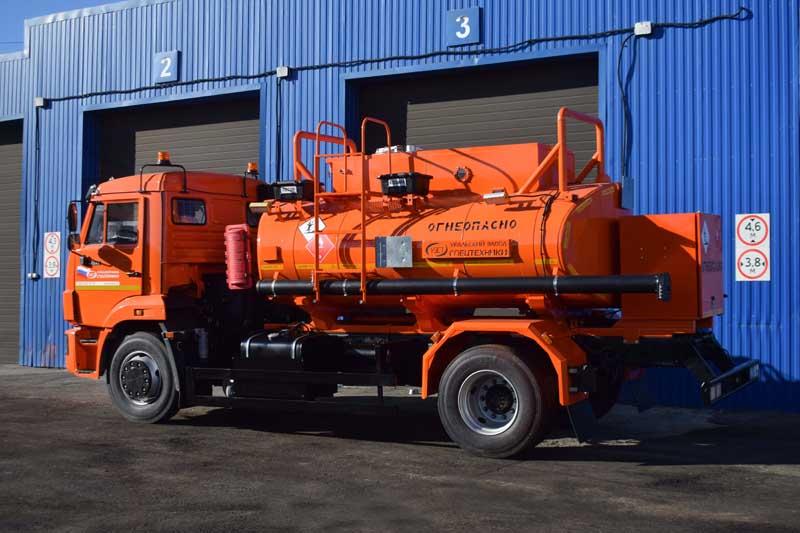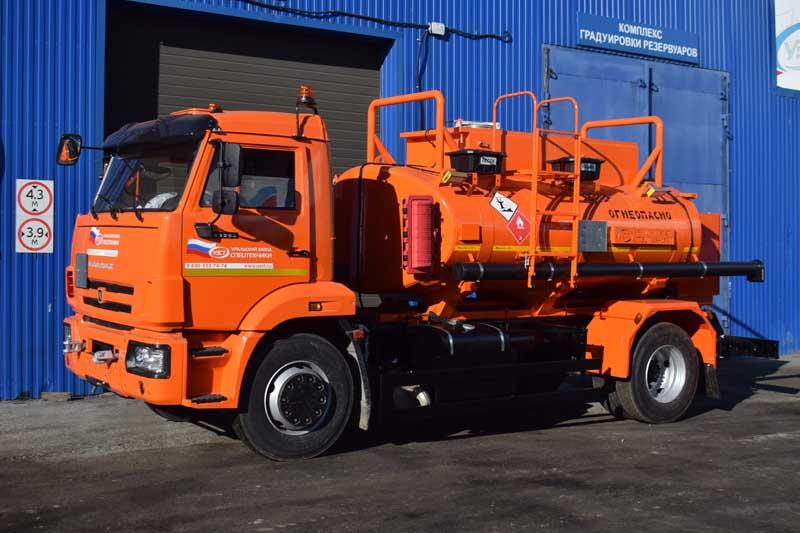 6х6, 292 л.с., коробка передач 1310ТО, без спального места, баки 210+350 л., объем цистерны 11 м³, 2 секции, насос УЗПМ СВН-80, эллиптическое сечение, УВТ между кабиной и цистерной с левой стороны, укомплектован ДОПОГ