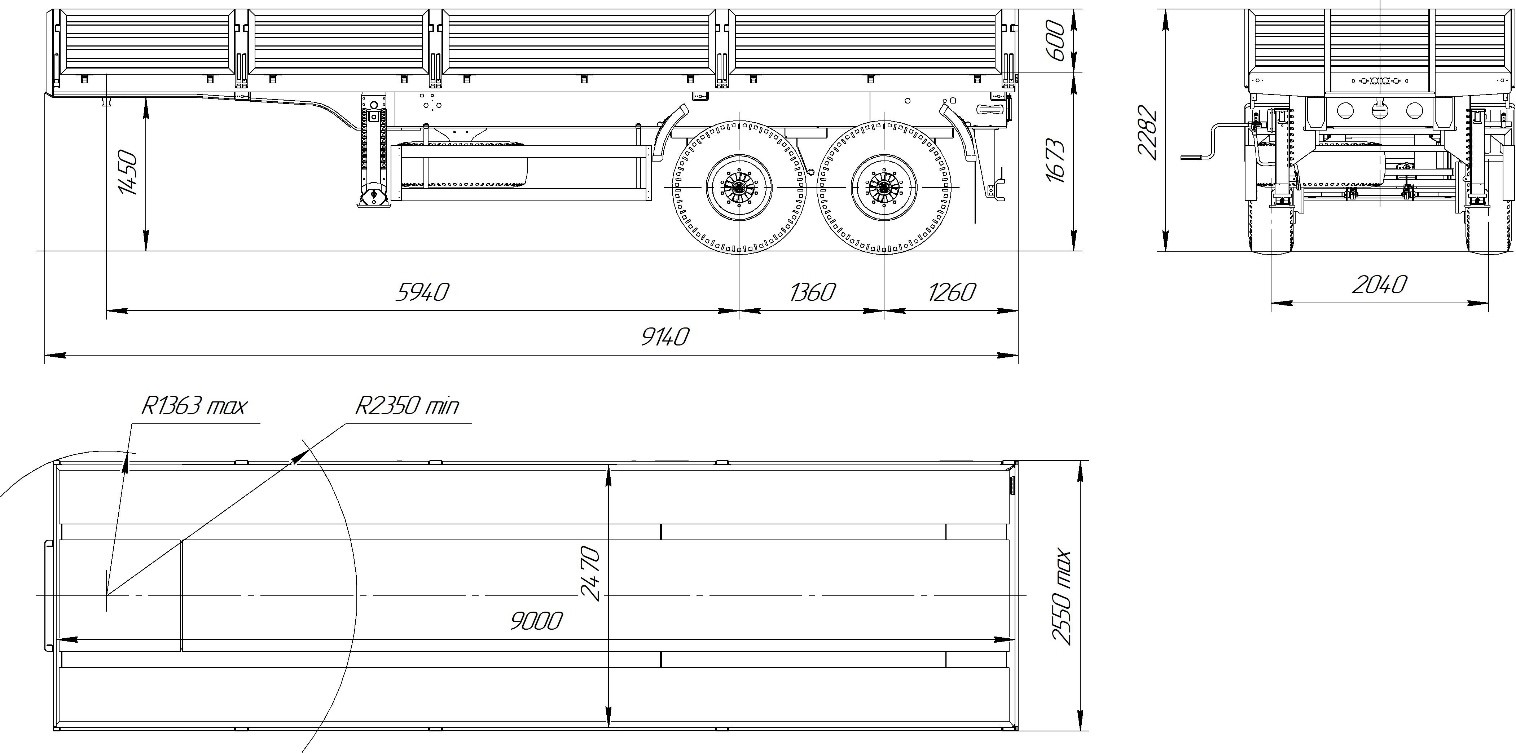 | Технические характеристики и комплектация бортового полуприцепа марки УЗСТ ППБ-9180-019Б2-60 | |