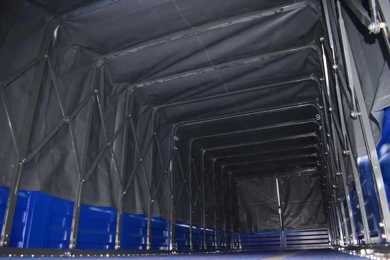 На бортовой платформе установить сдвижной тоннель в количестве ве 2шт. 1 шт от переднего борта до середины платформы, 1 шт от заднего борта до середины платформы. Оба тоннеля сдвигаются и фиксируются в передней и задней частях платформы, а также в середине платформы. Передняя и задняя торцевые части платформы также затентованы. Во избежании просветов между тентом и бортом, тент заходит ниже борта на 7-10 сантиметров. |