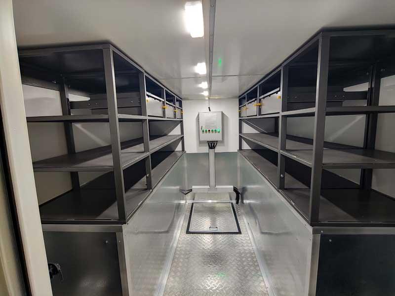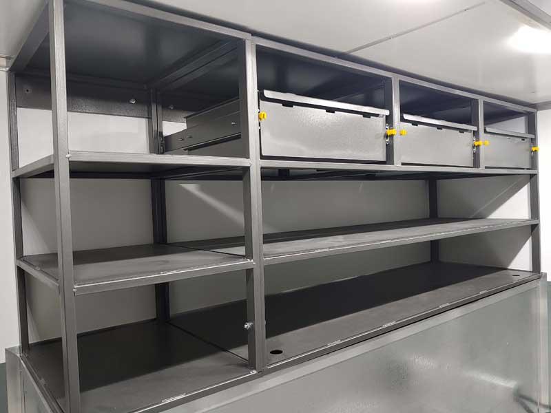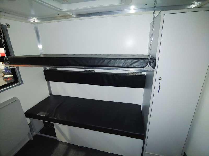 Каркасно-металлический из профильной трубы. Наружная обшивка - стальной лист 1,5 мм. Утеплитель - экструдированный пенополистирол 60 мм, с пропениванием стыков, оклейка пенофолом 5 мм. Пол - фанера 20 мм, пенофол 5 мм, фанера влагостойкая 10 мм, покрытие - автолин в пассажирском отсеке, рифленый алюминий в технологическом отсеке. |