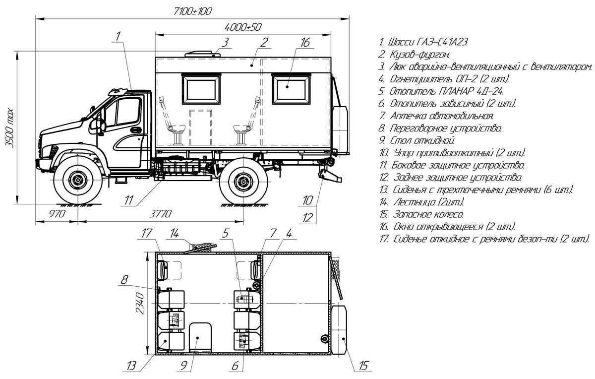 Фургон состоит из пассажирского и технологического отсеков.