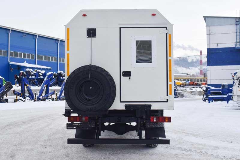 6х6, 228 л.с., коробка передач ЯМЗ-2361, каркасно-металлический фургон, генератор EG-202. Технологический отсек: сверлильный станок, наждачно-обдирочный станок, токарный станок, сварочное оборудование, газорезательное оборудование, верстак, умывальник, шкаф, диван-рундук
