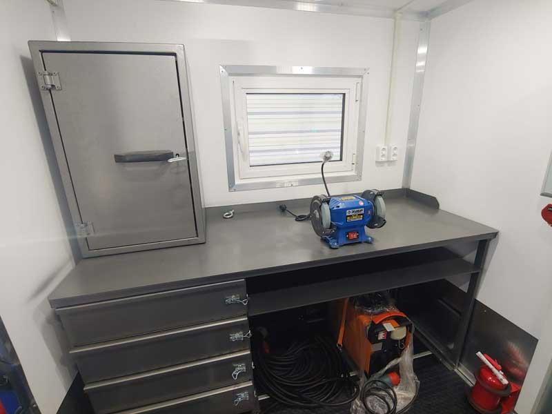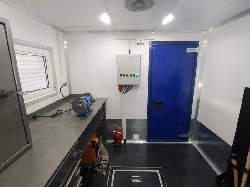 Внутренняя компоновка передвижных мастерских с КМУ разрабатывается индивидуально для каждого заказчика – в зависимости от его задач и пожеланий.
