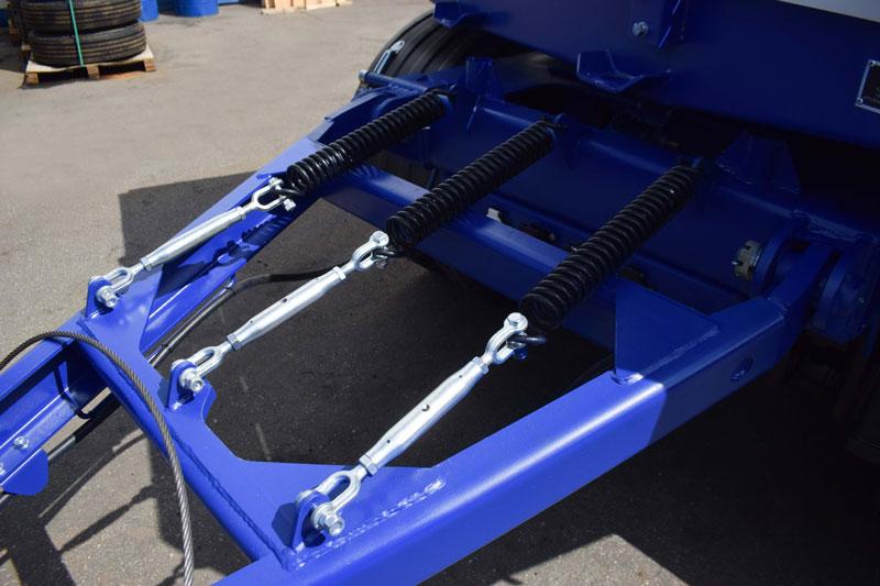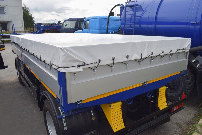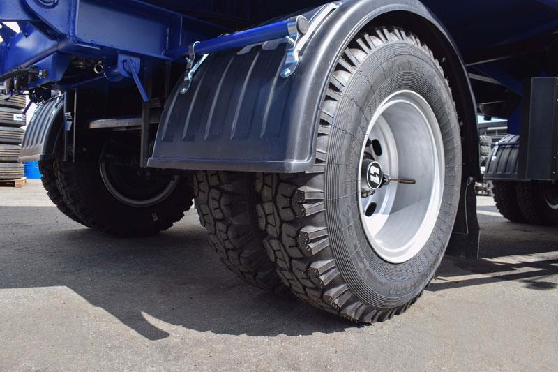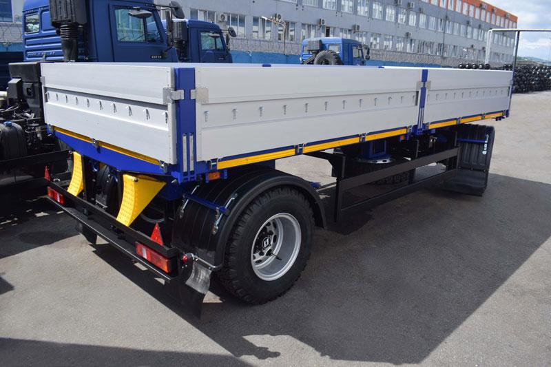 2 оси, грузоподъемность 8 т., оси HJ (BPW), рессорно-балансирная подвеска HJ (BPW), 3 пары стоек высотой 1000 мм, шины 425/85R21, длина погрузочной платформы 6590 мм, высота бортов 730 мм