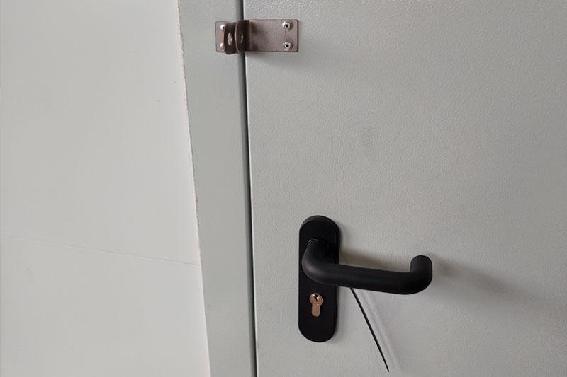 Открывается наружу, снабжена ручками с внутренней и внешней стороны.