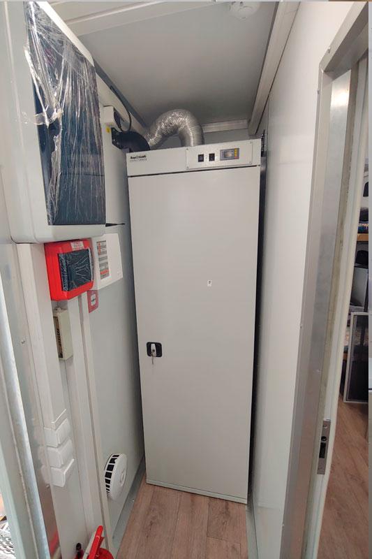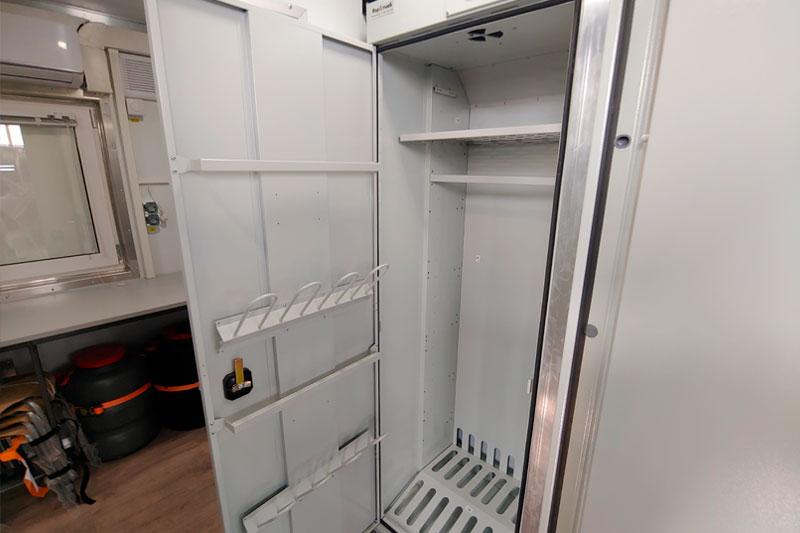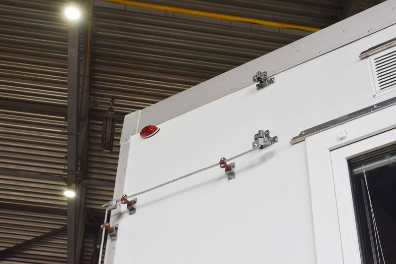 Отсеки фургона оснащены автоматической пожарной сигнализацией и системой оповещения с выводом светозвуковых оповещателей на улицу. Сигнал о срабатывании системы передается с внутреннего приемно-контрольного прибора на пост круглосуточного дежурного персонала.