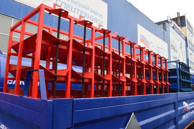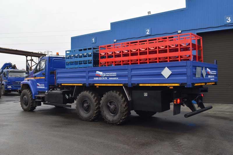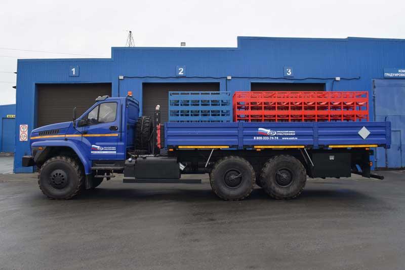 | Исполнение | Паллеты для перевозки баллонов устанавливаются на бортовой платформе и фиксируются болтами для исключения смещения во время эксплуатации автомобиля. |