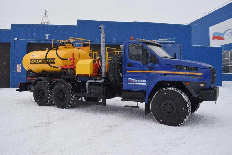 - Цистерна. Используется при транспортировке кислотно-солевых жидкостей и их подаче к насосу ВД.