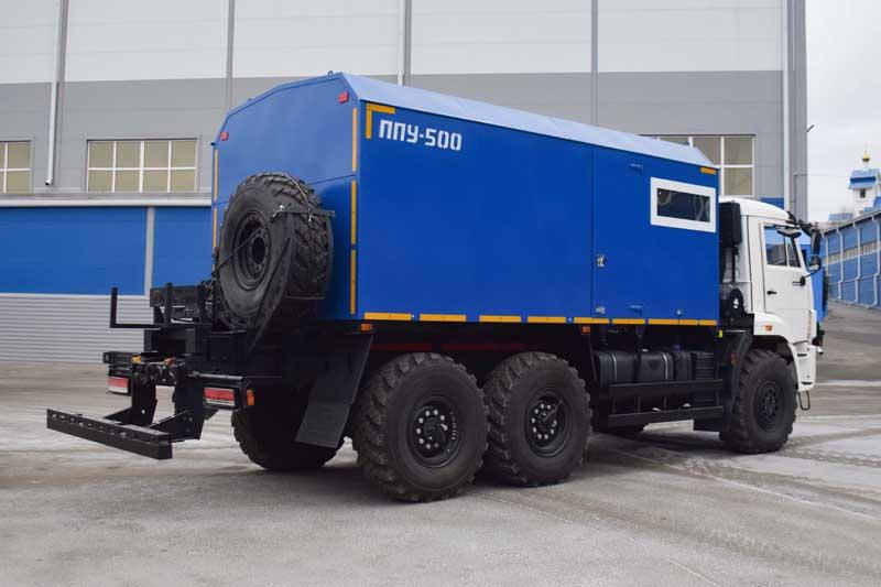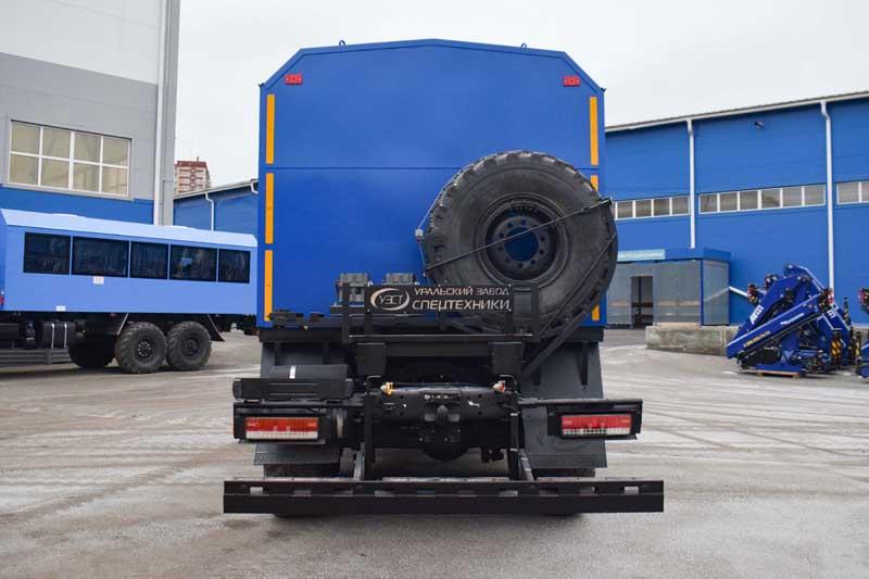 6х6, 283 л.с., коробка передач ЯМЗ-1105, без спального места, баки 300+210 л., насос Kopper Pump PL-60, производительность 1600 кг/ч | 100 кгс/см², каркасно-металлический фургон, бак запаса воды 5,2 м³, 2 топливных бака по 0,3 м³, пульт управления установкой в кабине, дистанционная система безопасности ДС-Б-050 МВ