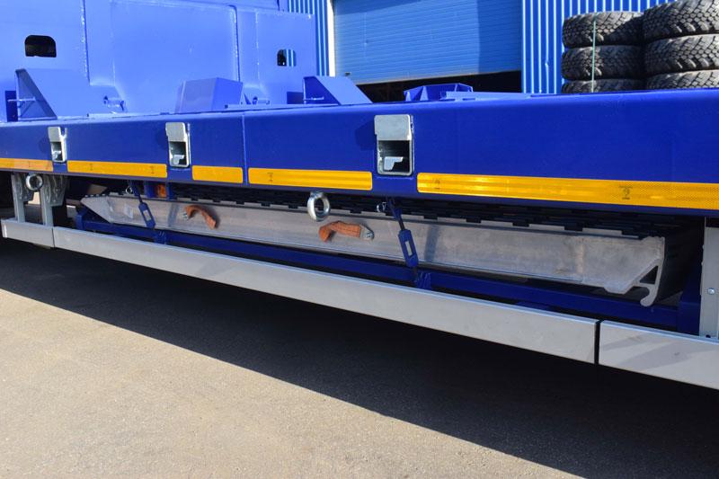 - Полуприцепы марки УЗСТ оснащены большими крепкими увязочными петлями вдоль бокового лонжерона снизу.