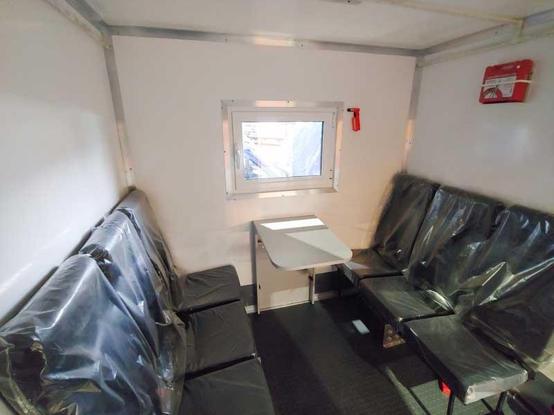 Бескаркасный, из пятислойных сэндвич-панелей, с утеплителем. Наружная обшивка - стеклопластик1,5 мм. Утеплитель - экструдированный пенополистирол 50 мм. Внутренняя отделка - стеклопластик. Пол усиленный - с поперечными усилителями. Покрытие пола - автолин, рифленая резина. |
